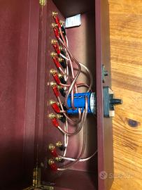 Selettore autocostruito in legno. Ottima condizione estetica e funzionale. Puo' supportare e selezionare fino a 4 paia di casse anche di alta potenza ma non più di un paio alla volta. Possibilità di trasporto a Roma zona Eur e di spedizione. Gradito contatto telefonico al 360430556.