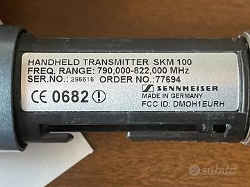 AlimentazioneIl trasmettitore portatile (SKM100) usa batterie da 9 V (in G1) — diverso dalle versioni successive che usano AA o pacchi ricaricabili.