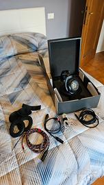 Sono presenti un cavo corto con Jack da 3.5 pagato 90 euro e adattatore da 6.3 mm a vite, cavo bilancio da 4.4 mm originale e un cavo XLR 4 pin lungo 4 m pagato 200 euro con una prolunga di 1 metro.