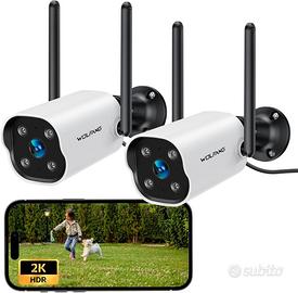 Vendo Kit da 2 videocamere di sorveglianza Wi-Fi da esterno a marchio WOLFANG, ad altissima risoluzione (2K UHD).