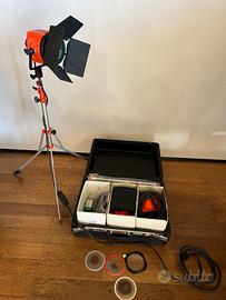 Kit in valigia Pulsar Quartzcolor 3130 Spot / Flood completo di stativi e accessori come da foto. Bellissimo set luci cinema in perfette condizioni, come nuovi. In regalo 3 lampade 500 w di ricambio. A volte i Led non bastano e se c'è bisogno di una bella luce i quarzi fanno sempre la loro parte. Dimensioni esterne valigia 55x44x22 peso Kg.13