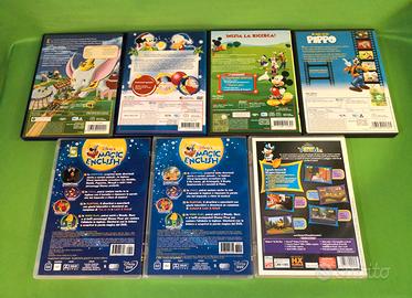 Set di 7 DVD e CD Rom cartoni animati e giochi Disney, alcuni con contenuti speciali, vari personaggi, tutti in buono stato, puliti, vedere elenco: