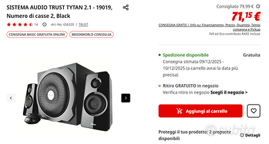 Paga in totale sicurezza con TuttoSubito e beneficia della Protezione Acquisti. I tuoi dati di pagamento non vengono mai condivisi con il venditore.