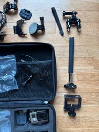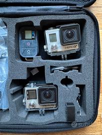 2 go pro, batterie, accessori vari, borsa porta gopro