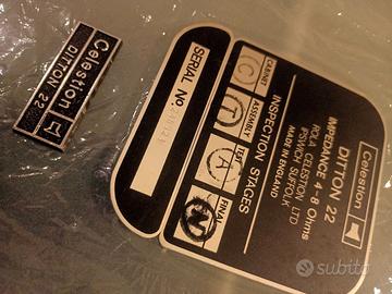 Set di placchette posteriori e logo anteriore per Celestion Ditton 22, in perfette condizioni.