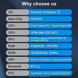 Smart 8K AI TV BOX 8GB/64GB RK3576 Quad Core Linux Debian12/Android 14 USB3.0 1000M RJ-45 Wifi6 RTC Set-Top Box BT Voice Remote.