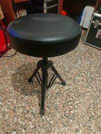 Sgabello rotondo nero, ideale per batteria o come seduta aggiuntiva. Seduta imbottita. Finitura in similpelle.