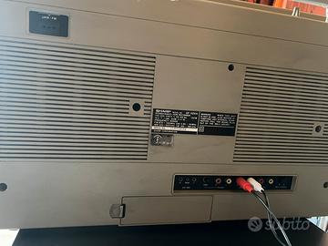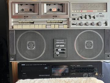 Vendo Boombox Sharp , modello GF525 in buone condizioni estetiche, senza parti rotte e con antenna originale. Si tratta di una radio Boombox iconica dei anni 80, questo modello e stato prodotto tra 1981 e 1983. La radio funziona perfettamente, dotato di ingresso line in rca , ingresso per giradischi è uscita line out rca. La parte del lettore deck, mangianastri non funziona! Personalmente lo usato con adattatore bluetooth e con un lettore cd esterno. Molto affascinante, più pz. da disgn , per collezione. Lunghezza 53 cm, altezza 33 cm e larghezza 13 cm con un peso intorno a 6kg. Prezzo 150 euro, NON TRATTABILE!!! Non spedì! Ritiro a Legnano. Cheers!
