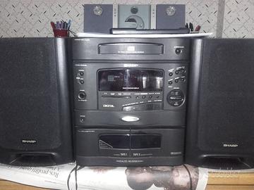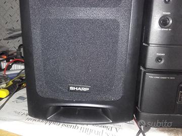 SHARP cd s3460 sistema audio perfettamente funzionante con suono pulito e potente sintonizzatore lettore cd doppia piastra di registrazione a cassetta con possibilità di copia veloce equalizzatore incorporato con dsp sonoro sui bassi macchina completamente revisionata con cambio totale cinghie sulla piastra registrazione testine ottimo stato dolby sub bass