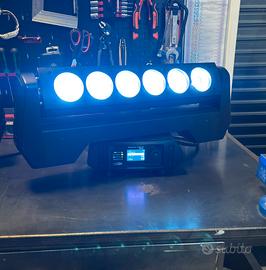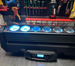Vendo coppia di Showtec Phantom 60 LED Bar, barre motorizzate professionali ideali per effetti beam dinamici, installazioni sceniche, DJ set ed eventi live. Le luci sono state usate pochissimo, perfettamente funzionanti e in ottime condizioni. Si tratta di barre LED moving head con 6 LED RGBW da 10W, capaci di generare fasci molto definiti grazie all’ottica da circa 5°, perfette per effetti beam stretti e scenografici.  Dispongono di movimento Pan continuo (fino a 540°) e Tilt 240°, con controllo preciso a 16 bit, permettendo movimenti fluidi e programmabili.  Controllabili via DMX con diverse modalità (fino a 41 canali), oltre a funzionamento automatico, musicale e master/slave.  Caratteristiche principali: •6 LED RGBW da 10W •Beam stretto e potente (circa 20.000 lux a 2m)  •Pan continuo + Tilt 240° •Modalità DMX, auto, sound e master/slave •Dimmer 0–100% e strobo regolabile •Struttura solida e professionale Incluse nella vendita: •2 barre Showtec Phantom 60 •Cavi di alimentazione PowerCon NON incluso flight case. Prezzo riferito alla coppia. Per info o prova scrivimi