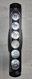 BARRA MOBILE CON 6 LED RGBW DA 10W - USATO -6 LED RGBW da 10W -Ottica da 60mm a 5° -Pan continuo -Tecnologia IFS Il dispositivo Phantom 60 LED Bar è una barra mobile con 6 LED RGBW da 10W. Offre una rotazione continua sul movimento pan e sul controllo pixel. L’ottica da 60mm a 5° crea un fascio leggero a piatto con una miscelazione cromatica uniforme. È inoltre dotato della tecnologia IFS che aiuta a combinare fari IFS con funzioni simili al fine di ottenere un effetto sincronizzazione. In questo modo programmare colori, programmi, strobo e velocità sarà un gioco da ragazzi. Il dispositivo Phantom 60 LED Bar è una testa mobile che può essere usata dai progettisti luci come dispositivo per creare delle simpatiche forme colorate in movimento. SPECIFICHE PRINCIPALI: -Lux @ 2m: 20740 lux -Angolazione del fascio: 5° -Sorgente luminosa: 6 LED RGBW da 10W -Tensione in ingresso: 100-240 VAC -Consumo di corrente: 100W max. a piena potenza -On-Board: Display dotato di sensore di gravità -Modalità: DMX, Auto, Audio & Master/Slave -Protocollo di controllo: DMX512 -Configurazione controllo: 9, 17, 33, 41 -Dimmer: 0-100% -Curve dimmer: Lineare, Quadrato, Quadrato-I, Curva S -Strobo: 0-20Hz -Pan: 540° & Continuo -Tilt: 240° -Risoluzione Pan/Tilt: 16 bit -Speciale: Inversione Pan/ Tilt & Black out da DMX -Colore: Nero -Alloggiamento: Metallo & Plastica con ritardante di fiamma plastica -Collegamenti dati: Ingresso/Uscita dati XLR a 3 poli -Collegamenti di alimentazione: Ingresso e uscita di corrente professionali -Dimensioni (LxPxH): 590 x 253 x 150 mm -Peso: 8 kg -Certificazione: CE -Temperatura ambiente massima: 40°C