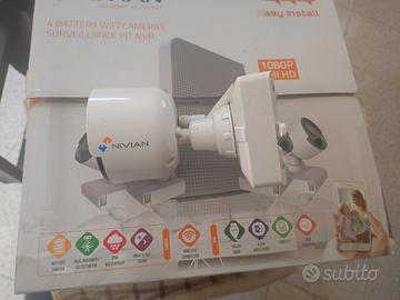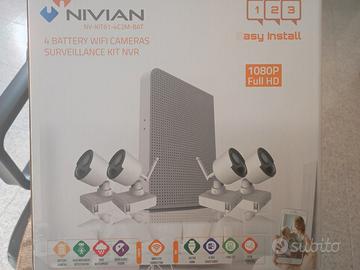Vendo kit videosorveglianza Nivian interno-esterno, wifi telecamere a batteria e con gestione pc e smartfone tramite app. Memoria su sd o hd da 500 gb compreso nel kit.