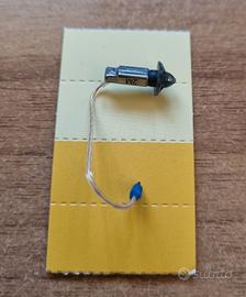 Retroauricolare Ric alimentato a pila 312 zas. Può montare diversi tipi di altoparlante ( S, M, P oppure HP solo con MOULD) garantendo un ampio campo applicativo.
