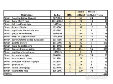 Materiale MIX Simon Urmet al 70% di sconto venduto singolarmente