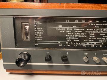 Connettività: Dispone di ingressi per giradischi e registratore a nastro, oltre a prese per altoparlanti esterni e antenne.
