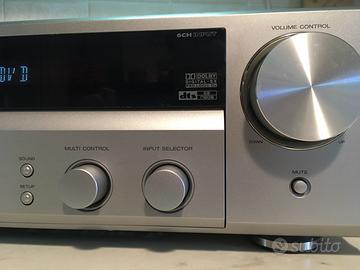 Kenwood Audio-Video Control Center KFR-V6100D, sintoamplificatore a sei canali da 100 Watt cadauno, utilizzabile in un sistema Dolby surround con due diffusori anteriori piu’ un centrale, un subwoofer e due diffusori posteriori. Ovviamente si puo’ usare anche come normalissimo amplificatore stereo con radio FM Rds, con ingresso per CD, Tape etc.