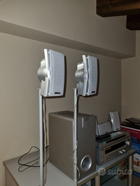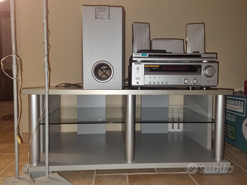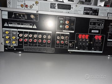Vendo sistema dolby surround 5.1 poco utilizzato comprendente sintoamplificatore kenwood KRF-V4080D, 5 diffusori acustici kenwood KS-308 120W, subwoofer attivo kenwood SW-38HT 100W, telecomando. Disponibili 2 colonnine in ghisa vogel's (55,00 ?), lettore DVD Sony DVP-NS355 con telecomando (20,00 ?), mobile porta TV grigio con mensole interne in vetro 5mm (45,00).