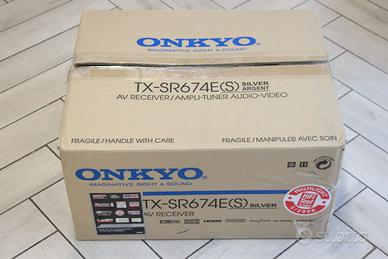 In vendita sintoamplificatore home theatre Onkyo TX SR 674E , 7.1 , da 140 watt rms per canale (pilotabile sia a 4 ohm che 6, 8 e 16 ohm ) . Dts hd master audio e trhue hd .
