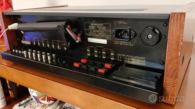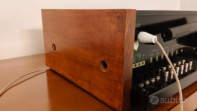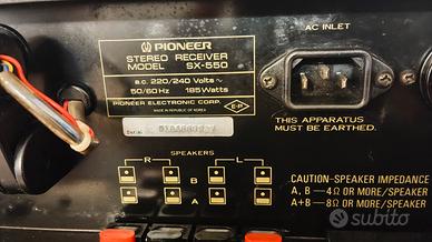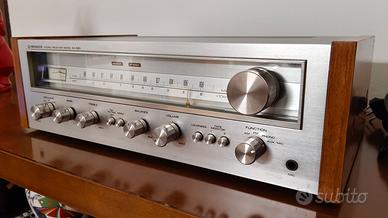 Oggetto completo e revisionato in Aprile 2026. Note informative: Ottime condizioni / Revisionato: prezzo medio 300€ – 450€. Un esemplare pulito, con illuminazione funzionante e condensatori controllati, mantiene bene il valore nel tempo. Pioneer SX-550 è un sintoamplificatore entry-level (ma di alta qualità) della celebre serie "Silver Face" di Pioneer, prodotto tra il 1976 e il 1978. Nonostante fosse uno dei modelli meno potenti della linea, è oggi molto ricercato dai collezionisti per il suo suono caldo, la costruzione robusta e l'estetica iconica. Il Pioneer SX-550 non punta sulla potenza bruta, ma sulla pulizia del segnale e sulla musicalità tipica dell'epoca d'oro dell'Hi-Fi giapponese. Potenza in uscita: 20 watt per canale su 8Ω (stereo). Risposta in frequenza: da 10Hz a 60kHz. Distorsione Armonica Totale (THD): 0,3%. Fattore di smorzamento: 25. Rapporto segnale/rumore: 70dB (Phono MM), 90dB (linea). Ingressi: Phono (per giradischi), Aux, Tape Monitor (per registratori o lettori CD moderni), Microfono. Sintonizzatore: FM/AM integrato con scala parlante retroilluminata e indicatore di segnale analogico (a lancetta). Dimensioni: 448 x 141 x 307 mm. Peso: 9,4 kg. Collezionismo e Valore Il Pioneer SX-550 è considerato una "porta d'ingresso" ideale nel mondo del vintage audio. Ecco perché è un pezzo interessante per una collezione: Qualità Costruttiva: A differenza dei modelli degli anni '80, l'SX-550 ha un pannello frontale in alluminio spazzolato, manopole in metallo pieno e un cabinet spesso rivestito in finto legno (alcuni collezionisti lo sostituiscono con vero legno massello per aumentarne il pregio). Facilità di Manutenzione: Grazie al design spazioso e all'uso di componenti discreti, è relativamente facile da riparare o restaurare (re-capping dei condensatori). Il Suono "Warm": È noto per un timbro caldo e morbido, perfetto per l'ascolto di vinili in stanze di medie dimensioni