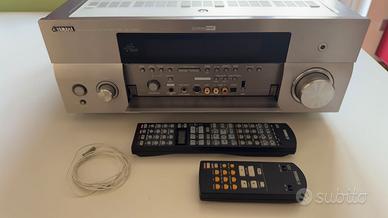 Pezzo storico, per amanti del suono. Da collezione. Sintoamplificatore home theatre 7.1 Yamaha RX V 2700 . Entrate digitali a a 24 bit/192 khz su rca e fibra ottica (da notare che monta tra i migliori DAC in commercio in fatto di qualità e distorsione armonica, e cioè i PCM1791 distinti per canale). Entrate dirette 7.1 . Preout su tutti i canali . 140 watt rms x 7 a 8 ohm (su 6 ohm quasi 200 watt rms per canale!) . Il sintoamplificatore è usato pochissimo e in eccellenti condizioni sia funzionali che estetiche come da foto . Caratteristiche principali: Canali 7.1 Dolby Digital EX/ Dolby Pro Logic IIx DTS-ES Discrete 6.1 DTS 96/24 / DTS Neo:6 Pure Direct HDMI (In/Out) (2.1). Preout su tutti i canali , upscaling a 1080P, Numerose entrate digitali e anologiche (phone compreso) Possibilità Bi-amping , front effect, multizona. 23 effetti DSP, Uscita frontale per "presence") . OSD su schermo . Entrata USB per la riproduzione dei file audio direttamente da pennetta, connessione Lan per gestione e riproduzione di fonti audio. Altre caratteristiche reperibili su internet. Le foto pubblicate sono tutte reali del sintoamplificatore che vendo . Disponibile acquistabile separatamente in un altra mia inserzione ) anche il DVD Yamaha Natural Sound DVD Audio / Video SA-CD Player DVD-S1700 che vedete in foto. Altre caratteristiche sono reperibili su internet . Per altre info o foto contattatemi . La vendita comprende il ricevitore con telecomando programmabile, telecomando mini e cavo alimentazione.