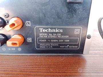 vendo amplificatore sintonizzatore funzionante technics sa-z50 completo di antenna. am più fm, potenza 150 watt. ingressi phono, aux, uscite rec out, play back. peso kg5. dimensioni 43 per 20 per 13 cm.