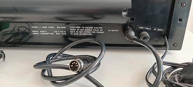 📻 Europhon RCK 3005 T – Sintonizzatore Hi-Fi Vintage Stereo 3 bande: LW / MW / FM | Made in Italy Affascinante sintonizzatore radio stereo Europhon RCK 3005 T, parte della prestigiosa serie RCK 3005, progettata e realizzata a Milano. Un vero classico dell’hi-fi italiano, perfetto per gli amanti della radio analogica, per impianti retrò di qualità e per collezionisti di elettronica vintage. ✨ Condizioni generali e funzionamento Apparecchio usato, testato e perfettamente funzionante Tutte le bande (FM / MW / LW) e i comandi rispondono correttamente Ottime condizioni estetiche, solo lievissime tracce del tempo Display, indicatori e manopole (sintonia, scala, selettore bande) pienamente operativi Buona sensibilità di ricezione su tutte le bande Stabilità di sintonia più che soddisfacente per un tuner analogico Ingressi e uscite audio DIN funzionanti ⚙️ Caratteristiche tecniche principali Marca / Modello: Europhon RCK 3005 T Tipologia: Sintonizzatore radio stereo (tuner) Bande supportate: FM – Onde Medie (MW) – Onde Lunghe (LW) Alimentazione: 220 V AC Circuitazione: Supereterodina classica da hi-fi Struttura: Scocca metallica robusta, pannello frontale con manopole numeriche e indicatori analogici Funzioni: Muting, AFC (Automatic Frequency Control) Serie: RCK 3005 (la sigla “T” identifica il sintonizzatore) 📐 Peso e dimensioni Peso: circa 5,5 kg Dimensioni indicative: 44 × 14 × 36 cm Cavi audio / connessioni DIN Spedizione + 15 euro pag. bonifico No Tuttosubito