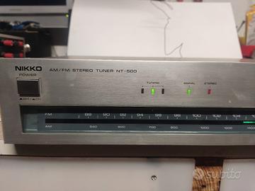 sintonizzatore Tuner NIKKO nt-500 AM/FM funzionante in buone condizioni estetiche qualche segno sulla parte superiore della scocca in metallo, antenna filo compresa come in foto della parte posteriore dove ci sono i collegamenti.