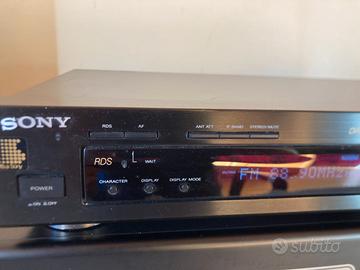 Produttore: Sony Modello: ST-S 370 Anno di fabbricazione: 1991 - 1992 Prodotto in: Giappone Colore: Nero .Consumo energetico: 11 W Dimensioni (LxAxP): 430 x 85 x 295 mm Peso: 3,2 kg Nuovo prezzo circa: 400,- Collegamenti DM Numero di uscite: Uscita RCA placcata in oro Numero di ingressi: FM (75 Ohm coassiale), AM (MW/LW) Dati tecnici Ricezione: UKW, MW, LW Frequenze: UKW: 87,5 - 108 Mhz MW: 531 - 1602 kHz LW: 153 - 279 kHz Sensibilità: 0,9 µV (Mono) 23 µV (Stereo) Rapporto segnale/rumore: 80 dB (Mono) 76 dB (Stereo) Fattore di distorsione: 0,04 % (Mono) 0,05 % (Stereo) Selettività: 80 dB (400 kHz Wide) 90 dB (400 kHz Narrow) 45 dB (300 kHz Wide) 70 dB (300 kHz Narrow) Memoria stazioni: 30 Caratteristiche speciali Sintetizzatore a 3 bande ( FM, MW, LW) Radio Data System (RDS) Tecnologia Direct Comparator Tecnologia Wave Optimizer per una migliore ricezione e suono Display digitale dell'intensità di campo 30 memorie di stazione (preimpostate) È possibile memorizzare 30 nomi di stazione Sintonizzazione tramite manopola rotante Commutazione della larghezza di banda IF (stretta/ Attenuatore dell'antenna commutabile Sintonizzazione automatica Hl-Blend Funzione di riproduzione per preset Interruttore stereo/mono Display numerico dell'intensità di campo Antenna interna in dotazione (MW / LW) Funziona perfettamente. Vedete prezzi su altri siti.