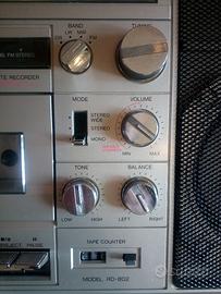 Vendo radio registratore stereo Synudine RD-802, funzionante, in buonissime condizioni solo qualche segno del tempo. Completa di cavo di alimentazione e antenna.