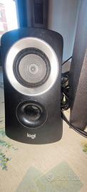 altoparlantiLogitech Z313. Sistema audio 2.1 con subwoofer compatto e due altoparlanti satellite. Potenza totale RMS di 25 W (potenza di picco 50 W). Include un'unità di controllo cablata per regolare volume e accensione. Connessione tramite ingresso jack da 3,5 mm, compatibile con PC e altri dispositivi audio.