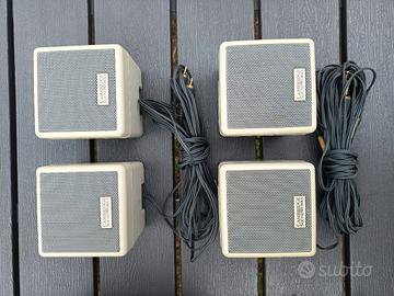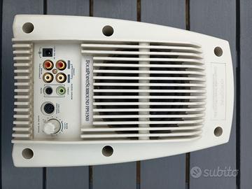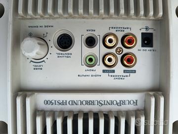 Amplificatore a 4 vie, altoparlante a satellite 6 Watt RMS per canale, subwoofer 17 Watt RMS. Controllo volume subwoofer indipendente. Collegabile sia RCA che mini-jack.
