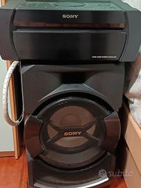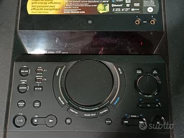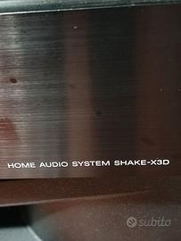 Sony SHAKE-X3D. Colore del prodotto: Nero. Potenza in uscita (RMS): 1200 W, Diametro del woofer: 25 cm, Diametro del tweeter: 2,5 cm. Bande del sintonizzatore: AM,FM, Particolarità RDS: EON,PS,PTY, Banda FM: 87,5 - 108 MHz. Formati audio supportati: AAC,MP3,WMA, Tipi di dischi supportati: CD,CD-R,CD-RW,DVD,DVD+R,DVD+R DL,DVD+RW,DVD-RW. Alimentazione: AC, Consumi: 375 W, Consumi (modalità stand-by): 0,4 W