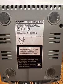 • Ricevitore CD HCD-EX1: Lettore CD con supporto CD TEXT (visualizza titoli tracce e artisti), radio AM/FM con 30 preselezioni (20 FM + 10 AM), amplificatore da 15W + 15W (RMS a 4Ω, perfetto per un suono chiaro e potente senza distorsioni).