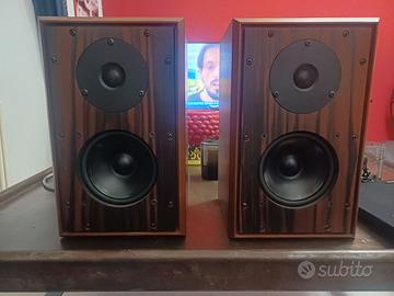 Sistema composto da: (vendibili anche separatamente). 2 Subwoofer Rogers AB1. (1986) 800 euro 2 diffusori acustici Rogers LS3/5A monitor loudspeaker (1986) 1.200 euro 2 diffusori acustici HL-P3ES Harbeth 800 euro (2004)Amplificatore integrato a valvole audio note sore. (1990). 1.200 euro Munito di 2 piedistalli in ferro per le casse e cavi. L’amplificatore è leggermente sbeccato su un lato frontale, come da foto. Visibile a Milano