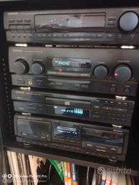 impianto stereo vintage Kenwood funzionante ottime condizioni. composto da giradischi technics sl-bd20 radio Kenwood T-76l amplificatore Kenwood A-97 compact disk Kenwood Dp-97 auto revers cassette doppio Kenwood X-87 completo di mobile e doppia cassa Pioneer 3vie cs5030 regalo una decina di dischi 33 giri. Non spedisco