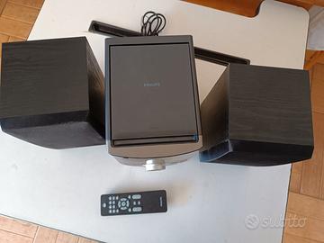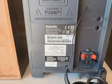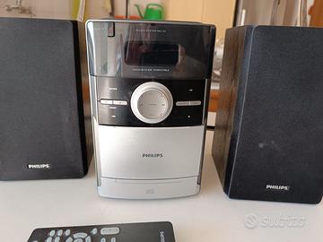 Sistema audio micro Philips MC 151 - Riproduzione di CD, CD-R e CD-RW - Dynamic Bass Boost per un audio più profondo ed emozionante - Piastra cassette con arresto automatico - Potenza totale in uscita 4 W RMS – Orologio su display con funzioni di timer sveglia/spegnimento automatico - Sintonizzazione digitale con 20 stazioni preselezionate - telecomando – Dimensioni: unità mm. 148 x 216 x 233 h – altoparlanti mm. 134 x 152 x 230 h
