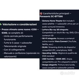 SISTEMA AUDIO CON CASSE E BASSI PANASONIC Home theatre SC-BTT590