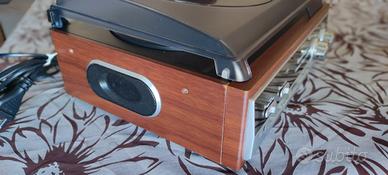 Sistema audio Soundmaster PL186H, mai utilizzato, perfettamente funzionante e pari al nuovo. Stile vintage anni '70, ha altoparlanti integrati, giradischi preamplificato con trazione a cinghia per LP 33/45/78 giri, sistema radio FM Stereo a due bande. Possiede un uscita jack per cuffie e un uscita RCA stereo per eventuali casse esterne. Contattatemi per qualsiasi informazione