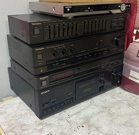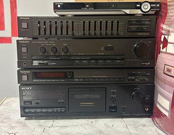 Technics Stereo Integrated Amplifier SU-800: Un amplificatore integrato stereo di Technics, che include controlli per il bilanciamento, i toni (bassi e alti), il volume e la selezione degli ingressi (tape 1, tape 2, CD/aux, tuner, phono).