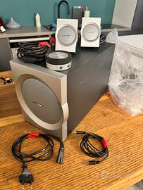 Due satelliti più subwoofer con tutta attivo e controllo remoto