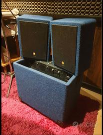 Vendo sistema composto da due casse un sub e un amplificatore e caveteria completa piu una borsa piena di altri cavi proel e altri con mixer foto dimostrative per informazioni contattatemi.