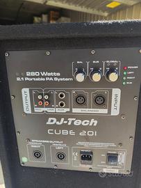 Sistema di amplificazione per DJ, DJ Tech Pro Cube 201 280 Watt ( 160+60+60) ingressi mixer, rec, linee stereo perfettamente funzionante. Non spedisco ritiro in loco.