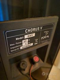 Vendo sistema di diffusori Focal Chorus 5.1, funzionanti ed in ottime condizioni: n.4 Diffusori Focal Chorus 816V n.1 Centrale Focal Chorus CC800V n.1 Subwoofer attivo Focal Chorus SW800V