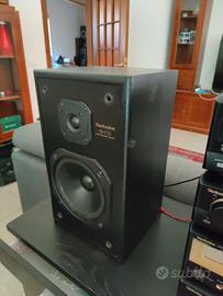 Amplificatore Stereo Technics, lettore CD, Radio, Cassette Deck finale e pre sistema CA10 perfettamente funzionante, revisionato in ottime condizioni. Elegante sistema Hi-Fi componibile, perfetto per gli amanti dell’audio di qualità. Il dispositivo offre un suono potente, pulito e ben bilanciato, ideale sia per ascolto musicale che per uso domestico quotidiano. Amplificatore stereo integrato Tipologia: amplificatore stereo integrato (pre + finale nello stesso chassis) Potenza tipica: circa 40–60 W per canale (su 8 Ohm) Ingressi: CD, Tuner, AUX, Tape Uscite: diffusori + cuffie Controlli: volume, bilanciamento, bassi/alti Progettazione Technics con bassa distorsione e buona linearità del segnale 👉 Suono pulito, dinamico e ben controllato, adatto sia a musica che uso quotidiano. 💿 Lettore CD Lettura dischi CD audio da 5 slot Conversione digitale/analogica integrata Controlli: play, pausa, skip, programmazione tracce Funzione di riproduzione programmata e casuale 📻 Sintonizzatore radio (Tuner) Bande supportate: FM / AM Memorizzazione stazioni Sintonia digitale con display (ha perso un po' di luminosità con gli anni, ma funziona bene) 📼 Doppia piastra cassette con inserimento a carrello e illuminazione interna Doppio deck (A/B) Funzione dubbing (copia cassette) Supporto nastri: Normal, Chrome, Metal (tipico Technics) Controlli full-logic (apertura/chiusura automatica) 🎚️ Bellissimo equalizzatore grafico VU meter di grandi dimensioni e illuminato Regolazione multi-banda delle frequenze Miglioramento personalizzato del suono Display a barre (spectrum analyzer) 🔈 Diffusori Technics SB-CS5 speakers con qualche segno di utilizzo, sulle tele ho preferito non pulire non volendo rovinarle Sistema: 2 vie (woofer + tweeter) Potenza: fino a 60 W Impedenza: 8 Ohm Risposta in frequenza: 42 Hz – 20 kHz Struttura: cassa chiusa (sealed box) 👉 Suono equilibrato con buoni bassi e ottima resa sulle medie frequenze. Telecomando originale in ottime condizioni presente