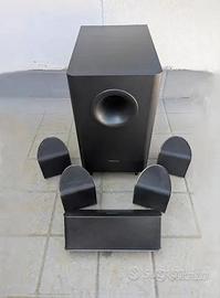 Il sistema è completo di telecomando originale e cavetteria. È la soluzione perfetta per chi vuole un vero impianto a componenti separati per il proprio salotto o postazione PC a un prezzo contenuto.