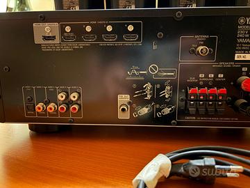 Vendo impianto Home cinema modello Yamaha HTR-2071 con 4 staffe per il montaggio a muro dei diffusori. Condizioni ottime. Cavi audio inclusi. Il sistema include il set di 5 diffusori con Subwoofer e il sintoamplificatore AV. Consegna a mano!