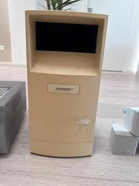 Vendo impianto Home Theater 5.1 di alta qualità, ideale per chi cerca un'esperienza sonora cinematografica potente e definita. Il sistema è completo di tutta la cavetteria originale, pronto per essere collegato e utilizzato immediatamente. L'impianto è composto da: • Sintoamplificatore Denon AVR-1508: Cuore tecnologico robusto a 7.1 canali, con ingressi HDMI (supporto 1080p), calibrazione audio Audyssey e sintonizzatore radio RDS integrato. • Sistema Bose Acoustimass 6 Series III: Composto da 5 iconici diffusori a cubetto "Virtually Invisible" bianchi e il modulo subwoofer Acoustimass per bassi profondi e coinvolgenti. • Set Cavi Completo: Include il fondamentale cavo di sistema originale Bose (connettore multiplo) per il collegamento tra subwoofer e amplificatore e i cavi per i 5 diffusori. Stato dell'oggetto: L'apparecchiatura è stata tenuta con cura ed è perfettamente funzionante. Nota estetica: Come visibile in foto, la mascherina frontale del subwoofer Bose presenta un ingiallimento dovuto all'esposizione solare, che non influisce minimamente sulla straordinaria resa sonora. Un set perfetto per film, gaming e musica. Prezzo: 290 euro Disponibile per il ritiro a mano a JESOLO.