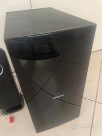 Vendo sistema audio Philips 2.1 composto da: 2 casse satelliti Con lettore blu-ray 1 subwoofer potente unità centrale compatta Perfetto per TV, film, musica e gaming 🎶 Suono pulito e bassi profondi grazie al subwoofer dedicato. Condizioni: Usato ma ben tenuto, funzionante al 100%. Caratteristiche: Design elegante nero Sistema 2.1 con bassi amplificati Facile da collegare a TV, PC o console Comsegna a mano