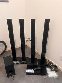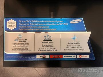Vendo Prezzo trattabile Sistema Home Theater Samsung HT-J4550 Blu-ray 3D 5.1, uno dei sistemi più esclusivi di Samsung. * Quattro sottili diffusori da pavimento con base * Subwoofer compatto per bassi potenti * Diffusore centrale per dialoghi nitidi * Versatili opzioni di posizionamento: da appoggiare * appendere * L'elegante design nero si adatta a qualsiasi stile di arredamento Il sistema offre un suono surround impressionante ed è pertetto per l'home theater o per l'ascolto di musica. Gli altoparlanti sono perfettamente funzionanti e presentano solo normali segni di usura, con qualche piccolo graffio. È in perfette condizioni di funzionamento .Viene fornito con tutti i componenti e gli accessori.