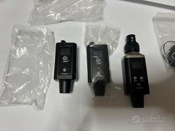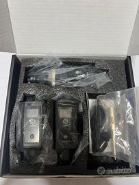 Kit completo: 1 trasmettitore + 2 ricevitori + auricolare + cavo USB.
